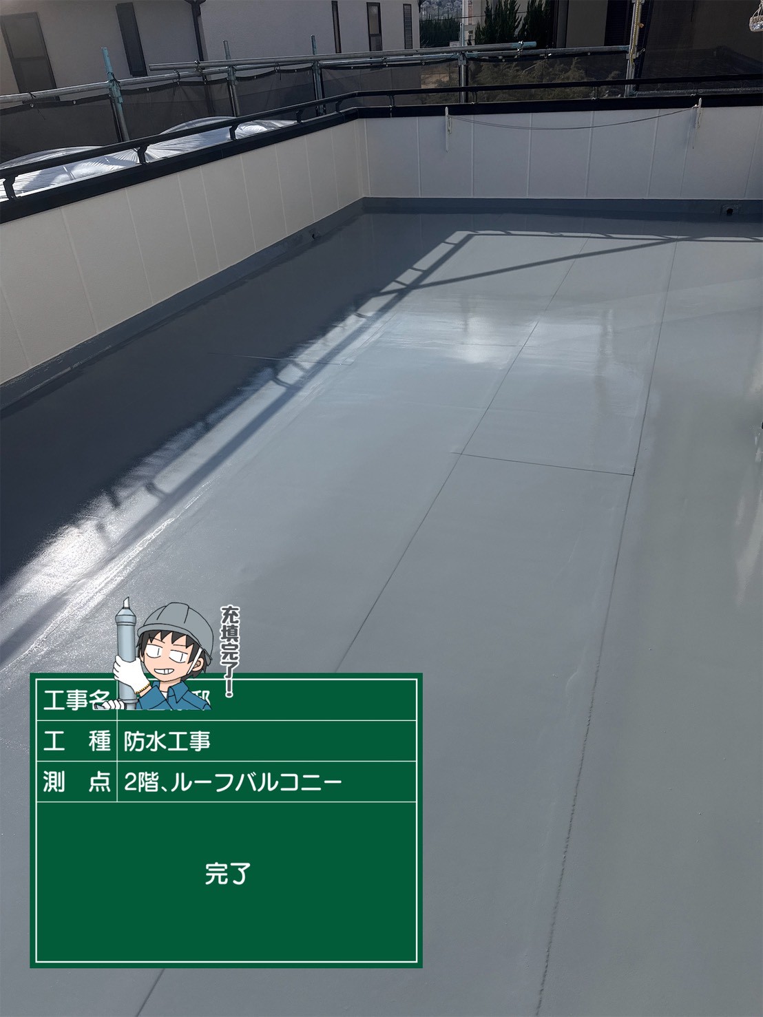 既存防水層の状態を丁寧に点検したうえで、下地に問題がないことを確認し、10年保証付きのウレタン防水にて施工を実施。これにより、屋上の耐久性と安心感が格段に向上しました。