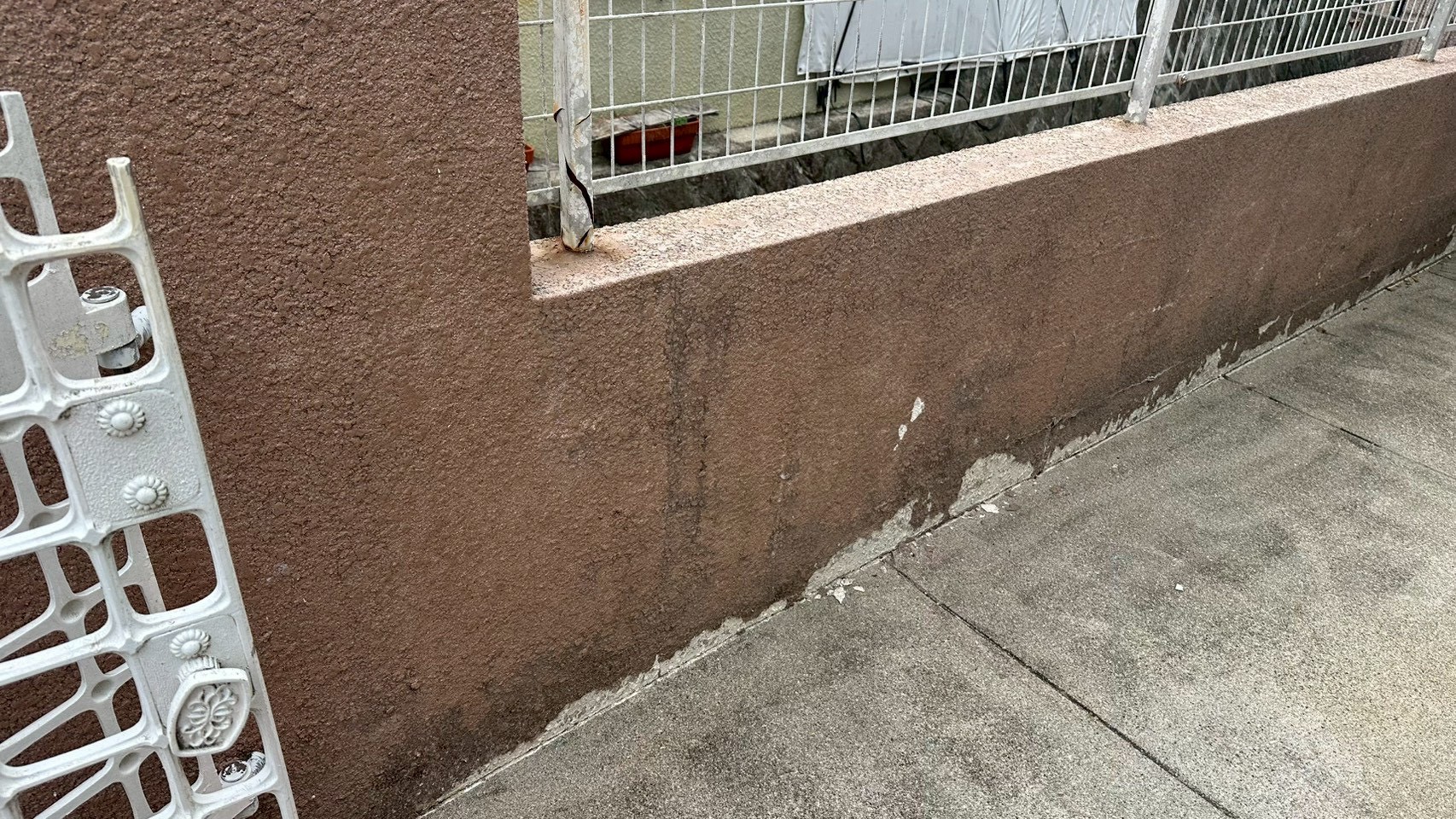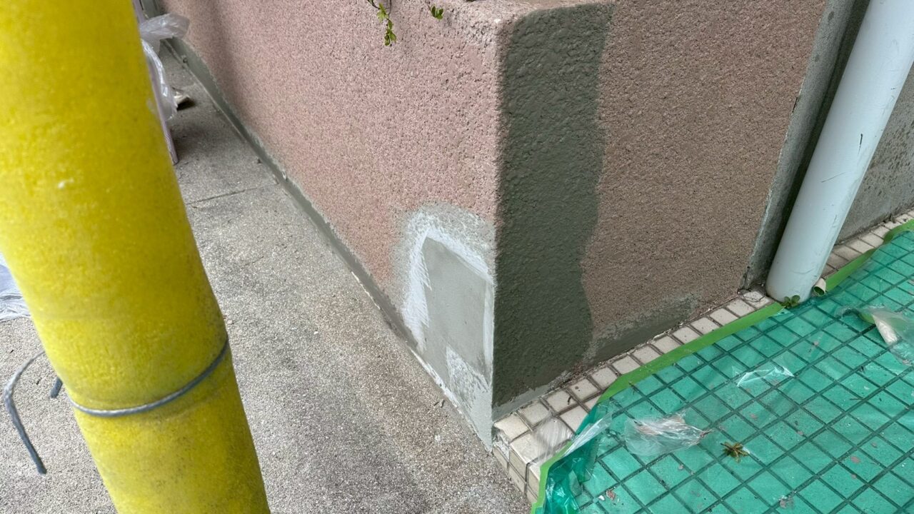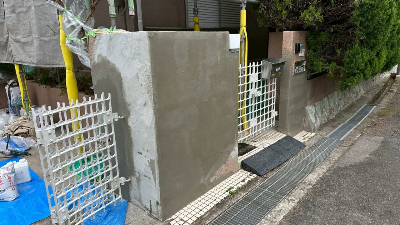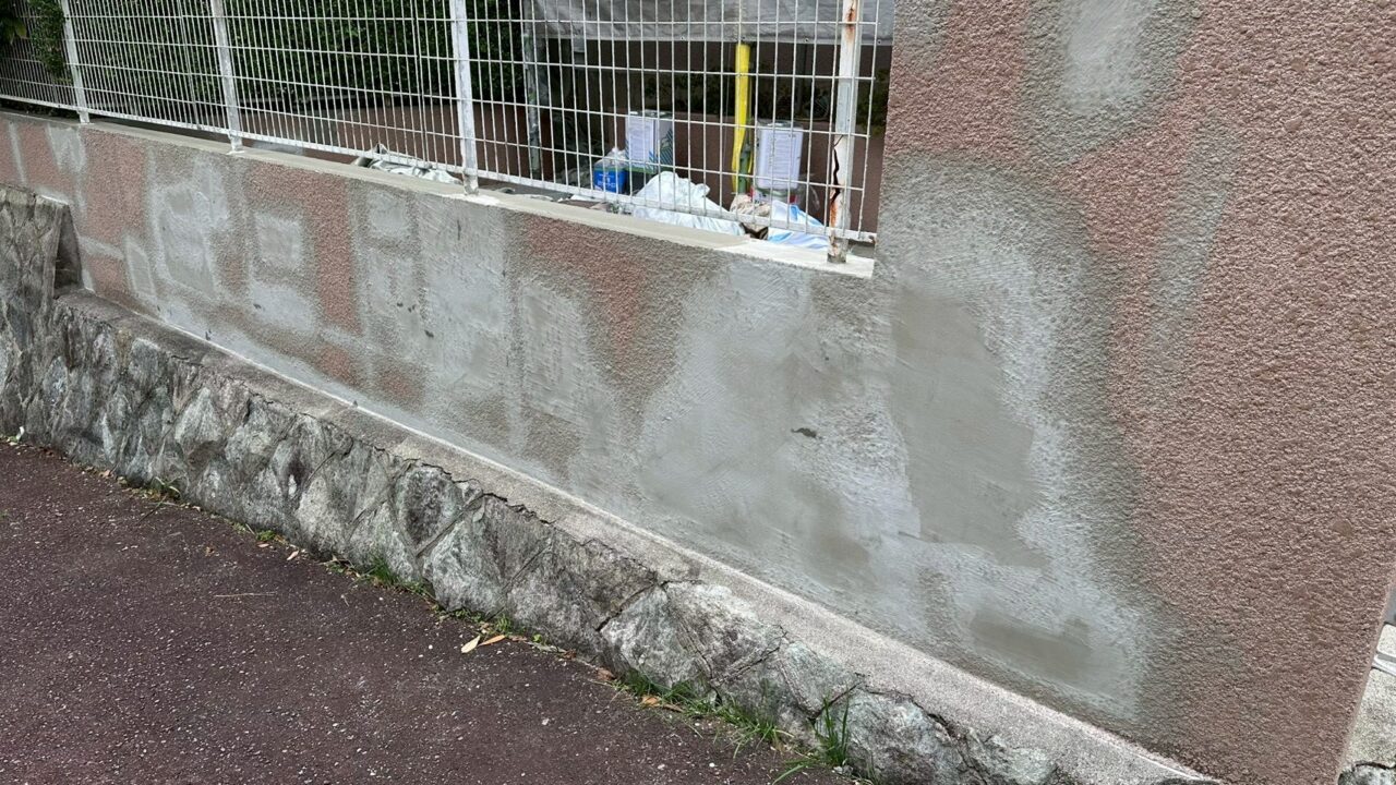 池田市伏尾台の現場にて、擁壁部分の左官補修工事を行いました。